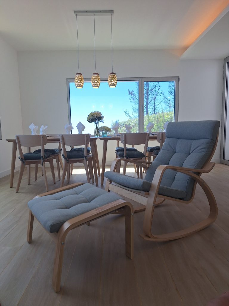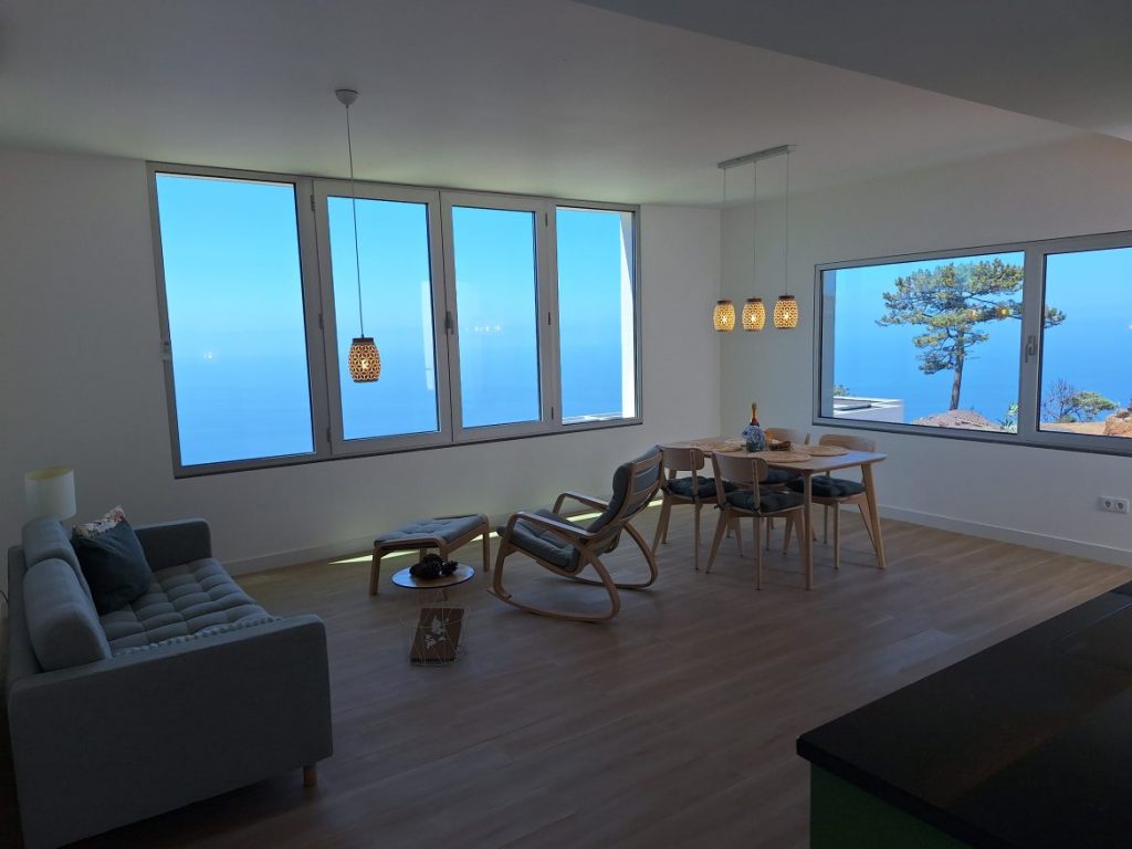 The Apartment Céu is accessible from your parking space via a private entrance from the outside. You are already in the light-flooded living/kitchen area with a unique view of the sea, the sky and the landscape.