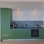 The Jardim apartment is accessible from your parking space via a private entrance from the outside. You are already standing in the light-flooded kitchen-living area with its unique view: